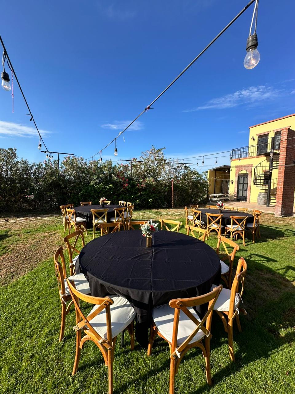 Servicios: Baños, Asador, Cocina, Estacionamiento, Refrigerador. Mobiliario y Camino de Mesa.