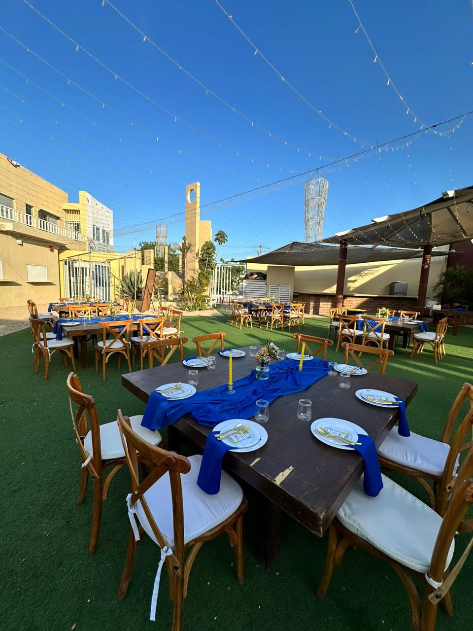 Servicios: Baños, Cocina, Escenario, Pista de Baile de Vitropiso, Mobiliario, Camino de Mesa, Tunel y Cielo de Luces.